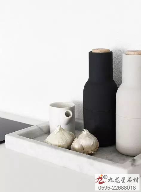↑大理石紋的托盤(pán)可以有一個(gè)。整齊的擺放上必備調(diào)料瓶,兼具收納功能哦。