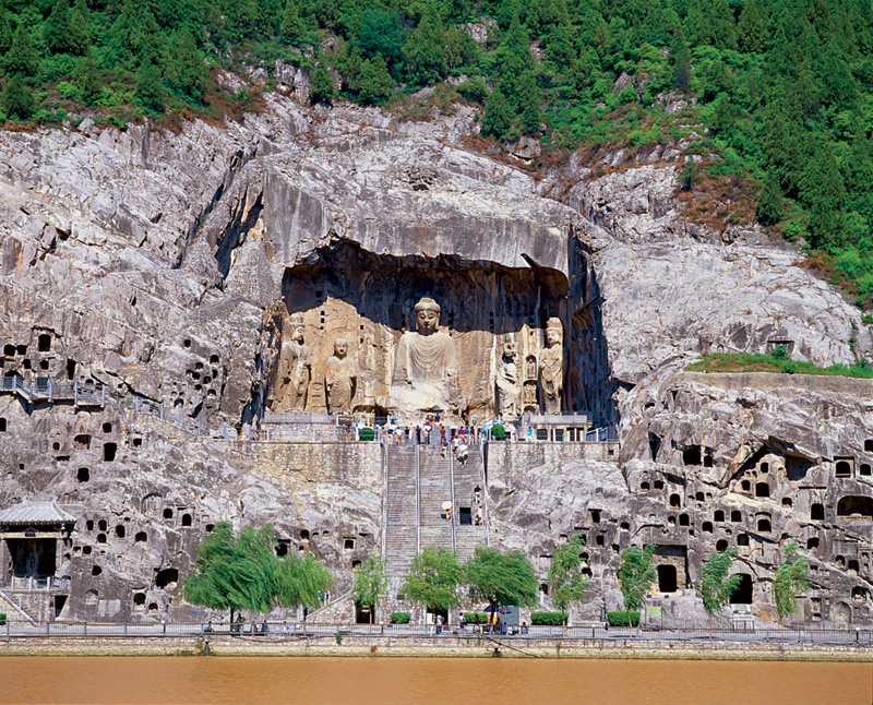 不論在云岡、敦煌,還是龍門,幾乎每一洞窟內的雕繪都組成一個相互呼應、相互關聯(lián)的完整世界。塑像是石窟的主角,一般本尊佛像呈現(xiàn)為圓雕形式。其背光與身光的圓形或蓮瓣形光環(huán)繪于或浮雕于身后龕壁上。本尊佛兩旁的弟子、菩薩等形象多以類似的圓雕形式表現(xiàn)出來,而供養(yǎng)人的形象則多被繪在墻壁之上,龕楣繪有裝飾性的花朵或飛天,窟內整個墻壁滿繪著佛教故事的情節(jié)、場面。形成有主有從、有襯托、有照應、有節(jié)奏起伏、有微妙變化的統(tǒng)一的藝術世界,孤立地繪畫或孤立地看雕塑都不能理解其真正的內容和意義。在這樣十種統(tǒng)一的藝術世界中,多種造型方法共同發(fā)揮著作用,表現(xiàn)出整體性的渾然氣勢。