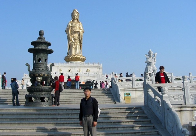 來禮佛廣場的路上我也買了幾柱高香,在上面的臺(tái)階左側(cè)為觀音菩薩奉上,凡是來普陀山的香客、游人無不對觀音菩薩畢恭畢敬。