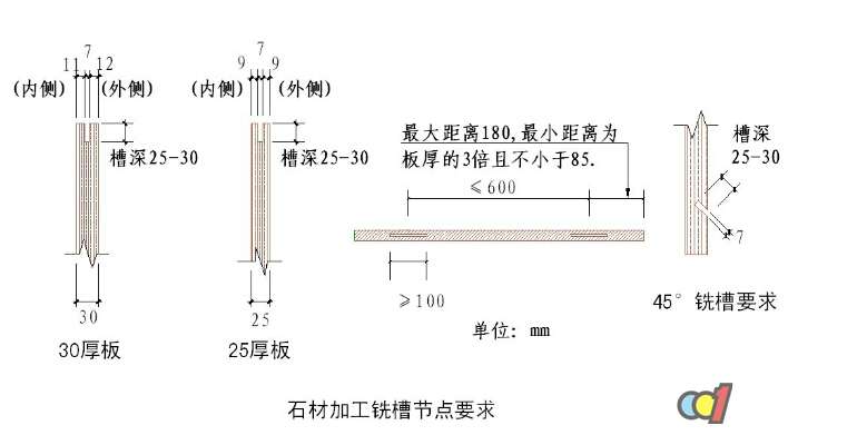 (6)石材短槽必須機械開槽,保證槽縫寬度符合設(shè)計要求,嚴禁現(xiàn)場手提切割機開槽。