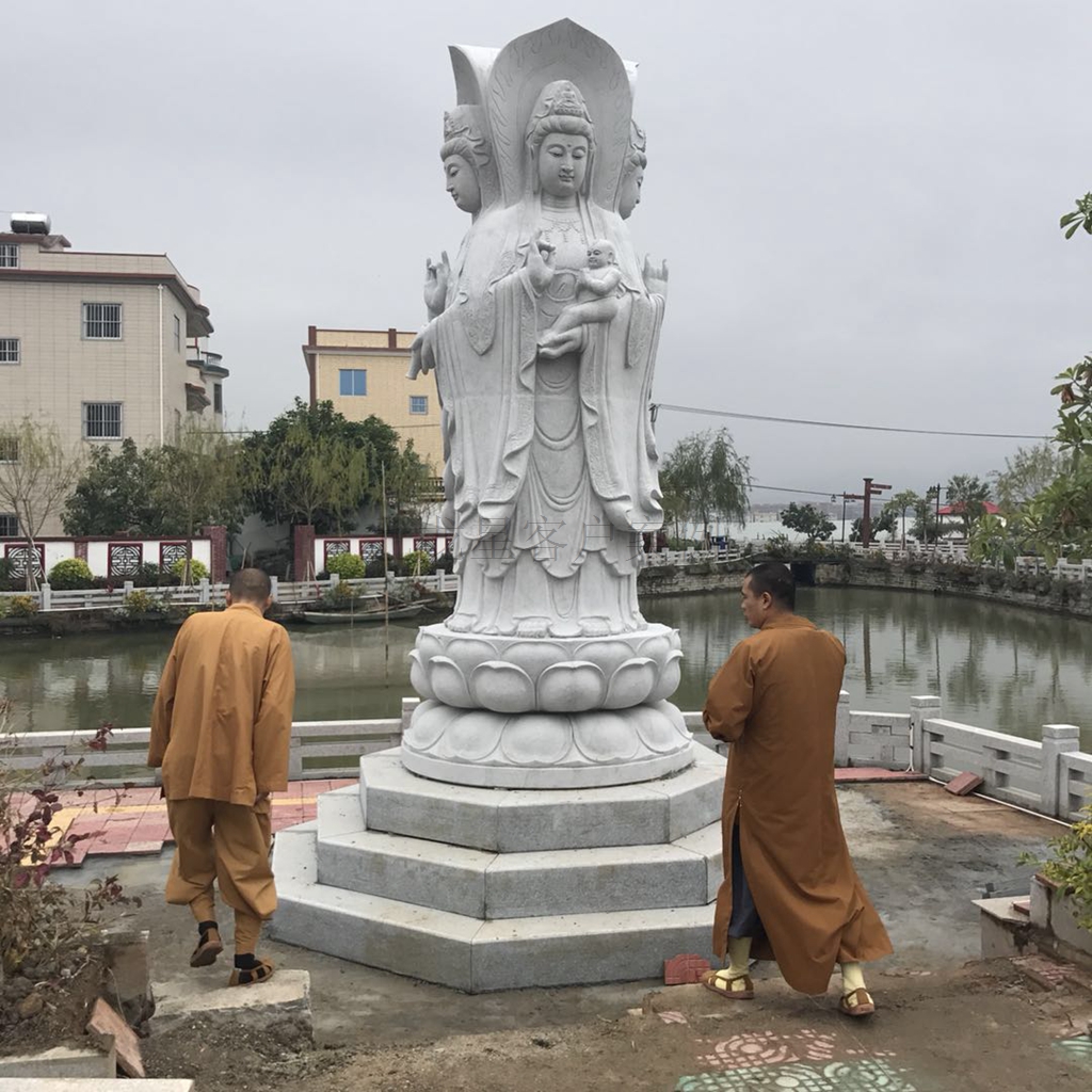 此尊四面觀音所用石料為G606(泉州白)花崗巖,總高度為4.5米,觀音本體分5塊拼裝,底座分2塊拼裝 ...