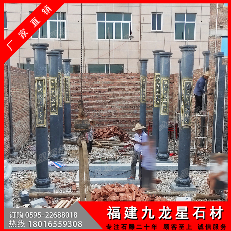 莆田普玉書院芝麻黑石材圓柱 青石雕龍柱