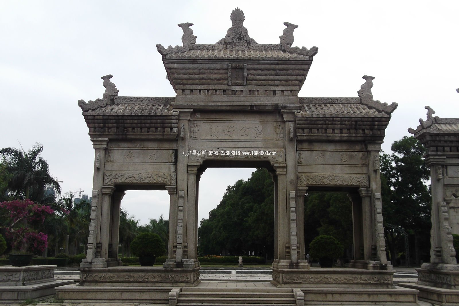 早年間的北京交通工具和運(yùn)輸工具是馬車、花轎、膠皮排子車和毛驢、駱駝一類,自然對(duì)交通的影響要求不太苛刻。可自打有了有軌電車,這牌樓可就顯得礙事了,西單牌樓就是那時(shí)候拆的。在準(zhǔn)備拆除東四牌樓時(shí),有好事的人先得了信兒,給當(dāng)時(shí)把持北京政權(quán)的張作霖打了電話,經(jīng)張大帥阻止竟沒(méi)拆成,這以后東四牌樓又延續(xù)了不少年。 早年間的北京的牌樓最集中、保存最好的當(dāng)數(shù)北海公園了。這里的各式牌樓有十幾座,其中的“積翠’、“堆雪”、“紫照’的牌樓是俄?xiàng)U式牌樓,這“龍光’坊又是北京牌樓中樓中樓柱最短的一座坊。您瞧嘿!那險(xiǎn)山橋前的牌樓,五層橫梁層層疊疊,那整個(gè)牌樓精巧絢麗,和那素潔的白塔上下輝映著,相得益彰,實(shí)在是建筑結(jié)構(gòu)上的佳思妙想,真是絕了。 石雕牌坊 在東城區(qū),古老的國(guó)子監(jiān)和孔廟所在的成賢街,短短的半里路程中就有四座牌樓。盡管它的規(guī)模不大,但您要打這兒經(jīng)過(guò)總有一股子莊嚴(yán)肅穆的感覺(jué),就像到了曲阜孔圣人家拜渴似的。對(duì)了,這牌樓是垂花柱出頭的懸山頂式。 舉世聞名的皇家花園頤和園,在萬(wàn)壽山排云殿前有 一座臨湖的牌樓,牌樓的北面上書“云輝玉宇’,南面上書“星拱瑤樞”,沿石階而上正是佛香閣,這排云殿的臨湖牌樓則正是頤和園最大建筑物的第一門戶。