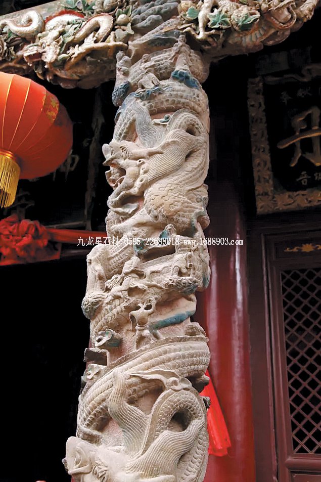 滾龍透雕石柱