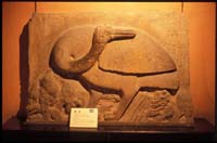 直接表現(xiàn)歌功頌德內容的石雕還有“昭陵六駿”浮雕?!傲E”為“又刻石為常所乘破敵馬六匹于闕下”。(《唐會要?卷二十》)的六件作品。宋游師雄題昭陵圖云:“先葬文德皇后長孫氏,當時陪葬之盛與夫刻蕃酋之像、琢六駿之像以旌武功,列于北闕,,(,“?!傲E”內容完全是夸示武功之作。此種表現(xiàn)形式在后來各陵中演變?yōu)轳匄B浮雕,不再停留于直接夸示武功的意義而上升到以祥瑞禽鳥顯示帝王英明的象征意義。駝鳥在當時被視為“能瞰鋼鐵”的異鳥,高宗認為駝鳥的來獻是“以太宗懷遠所致”,“乃刻像于陵之內”。(《太平御覽?卷九一四》)與駝鳥相類似的內容還有犀牛,獻陵石犀刻有“高祖懷遠之德”字樣,明確了其設置寓意。