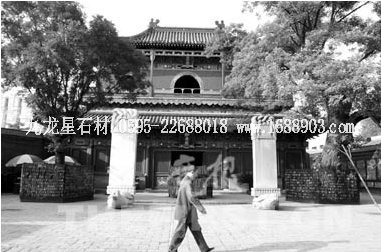 進(jìn)入由三個拱形小門組成的“山門”,我們就可看到左右兩側(cè)的鐘樓、鼓樓。古代有“晨鐘暮鼓”之說,太陽東升西落,所以鐘樓和鼓樓分居?xùn)|、西兩側(cè)。坐北朝南的第一重大殿是“天王殿”,殿里正面供奉彌勒佛坐像,兩側(cè)為四大天王像。穿過天王殿是第二重大殿———“大覺寶殿”,迎面看到的是釋迦牟尼佛、藥師佛和阿彌陀佛。雖然第三重大殿“七寶像殿”中原來供奉的七尊佛像在“文革”間被破壞,但是現(xiàn)在供奉的移自護國寺的整樘楠木佛像,也頗具觀賞價值。