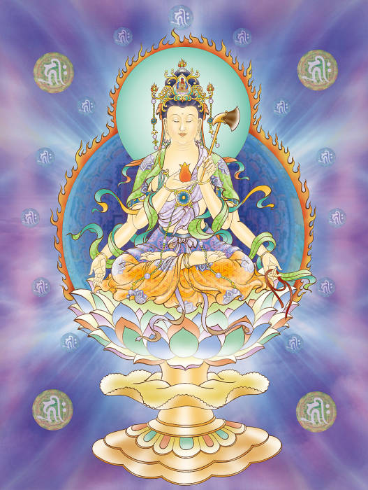 四、圓光觀音 無垢圓光觀世音 性凈明露常寂光 能伏眾生災(zāi)風(fēng)火 普明圓照遍十方