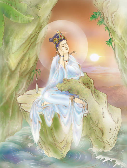 十八、巖戶觀音 寂然巖戶觀世音 凈眼普觀周沙界 息滅三毒貪愛苦 蚖蛇蝮蝎出窟穴