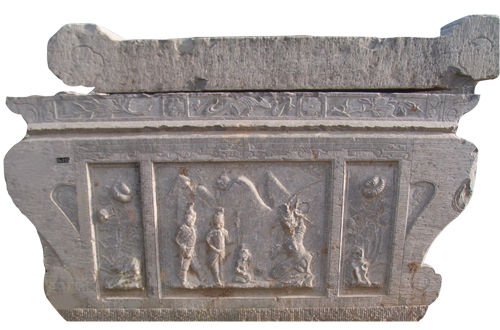 清孝子故事石供桌座(圖14) 高67厘米,長130厘米,寬63厘米。
