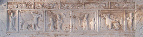 清初人物圖石供桌裙(圖10) 高61厘米,長237厘米,厚16厘米。