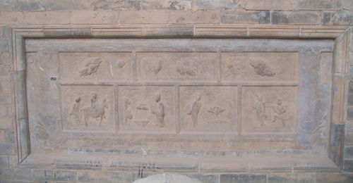 八仙人物圖石供桌裙(圖9) 高60厘米,長190厘米。