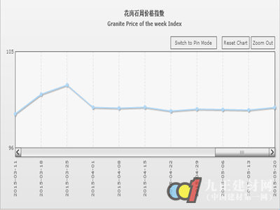 花崗石類(lèi)本周價(jià)格指數(shù)為99.76點(diǎn),小幅推升0.24點(diǎn),推升0.24%。本周花崗石價(jià)格穩(wěn)中有升,其中荒料、成品價(jià)格均小幅上揚(yáng),大板價(jià)格則繼續(xù)與上周基本持平。個(gè)別花崗石荒料本周因材質(zhì)較好,價(jià)格小幅回升;而部分成品價(jià)格因板面優(yōu)及市場(chǎng)需求增加而小幅推升。
