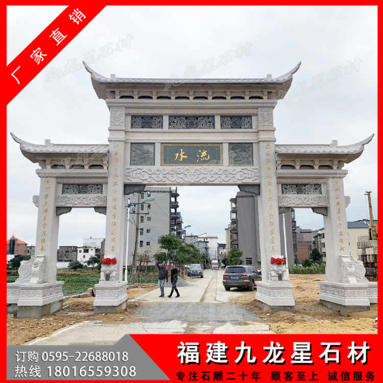 石牌坊定做一般都是選用青色或茶色的石料,上面雕刻最多、也。最為精彩的地方要數(shù)明間牌坊的中間大門的橫梁。在牌坊的石雕貔貅麒麟等飾物形式,現(xiàn)在大多是以美的形式展現(xiàn)在我們面前,給人以美感。因此,它對現(xiàn)代藝術(shù)設(shè)計(jì),對現(xiàn)代生活的審美內(nèi)容都產(chǎn)生了巨大的影響,構(gòu)成一種新的文化現(xiàn)象,即民族民間文化以獨(dú)特的形式內(nèi)容滲透到高度發(fā)達(dá)的現(xiàn)代文明中。