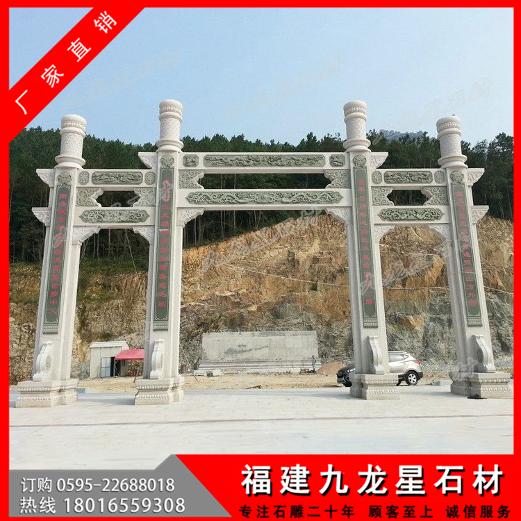 花崗巖石雕牌坊的雕刻工藝很有講究,石雕山門石牌坊的建筑特色是什么,我們要針對(duì)不同使用需求的牌坊在設(shè)計(jì)的時(shí)候要經(jīng)過了一系列構(gòu)圖、繪圖、雕刻、工藝講究,不同地域文化留下了不同特色,通過這樣的石雕牌坊,也讓我們尋覓到更多共性與個(gè)性的文化??v使時(shí)光荏苒,歲月流逝,觸摸這些斑駁痕跡,也讓我們尋覓到最初,在歷史長(zhǎng)河中解讀中華文化的博大精深,源遠(yuǎn)流長(zhǎng)。