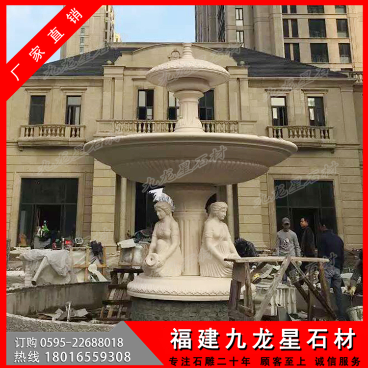 石雕流水噴泉是非常大型的石雕擺件,一般都適用于大型的廣場,大型的景區(qū),大型的別墅社區(qū)和高檔小區(qū)的景觀工程,所采用的材料大部分是黃銹石,芝麻白,蝦紅等耐用并且堅固的石材。