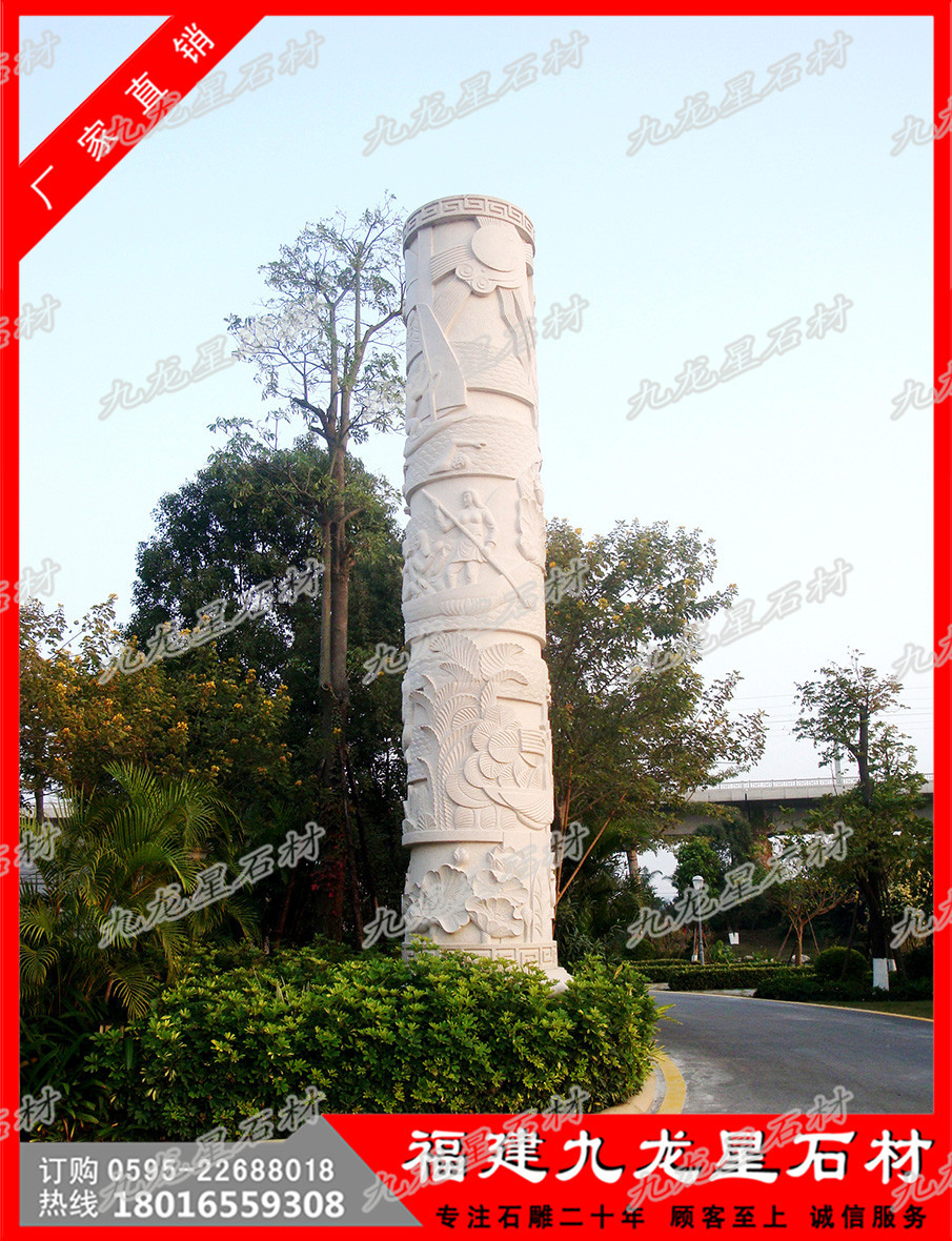 廣場景觀文化柱子石雕也被稱為石雕圖騰柱或者文化景觀柱以及石頭文化柱等,當(dāng)廣場景觀文化柱子石雕以單體形式出現(xiàn)時(shí)一般是作為城市廣場的主雕而放置在廣場的視覺中心位置,尺度高大醒目,空間領(lǐng)域覆蓋整個(gè)廣場。在多個(gè)廣場景觀文化柱子石雕柱體排列時(shí),直線排列的布局形式一般起到提示、分割、限定空間的作用。遠(yuǎn)視的效果會(huì)給人感覺廣場景觀文化柱子石雕之間的虛空間像一道透明的屏障,即分隔開公共空間與外部空間又形成一個(gè)開放的大門,透過它可以清晰地看到后面的景觀。半圓弧排列的布局一般是廣場景觀文化柱子石雕和主雕結(jié)合的方式,主雕和廣場景觀文化柱子石雕形成一個(gè)扇形空間,兩者之間相互呼應(yīng)形成一個(gè)整體的空間領(lǐng)域,統(tǒng)領(lǐng)整個(gè)廣場。