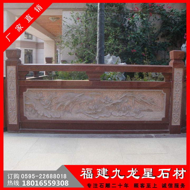 石雕欄桿就是用石材花崗巖、大理石等制作的石雕欄桿,石材欄桿堅(jiān)硬耐風(fēng)化,近幾年使用量非常廣泛,主要樣式有河道欄桿、橋面石欄桿、旅游區(qū)護(hù)欄、寺院雕刻的寺院石欄桿樣式等,每一個(gè)分類都有很多種圖片,綜合起來花崗巖欄桿圖片有幾百種,我們把經(jīng)典的石雕欄桿以圖片文字的形式介紹一下: