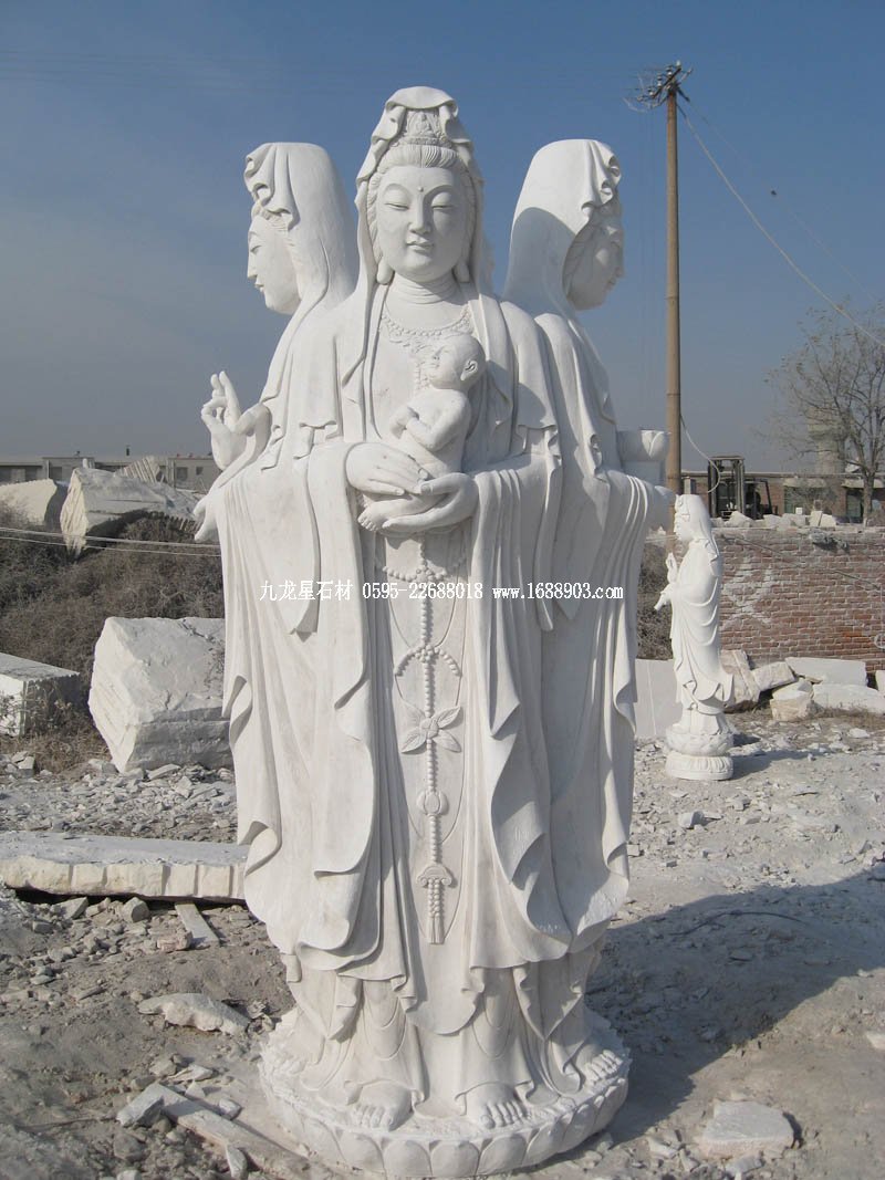 石雕四面觀音含蓮花踏板高2.8米,材質(zhì)為四川漢白玉。