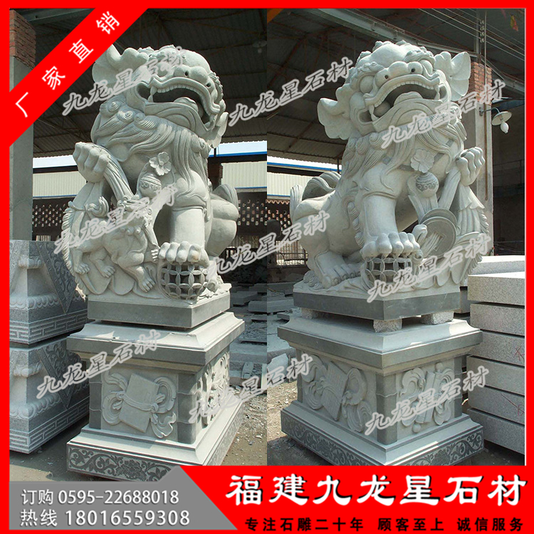 石獅子哪里有賣?找福建九龍星石材!對于不同的時期和不同的地域,石雕獅子廠家對石獅子雕刻也有著不同的特點(diǎn)。雖然整體來說,我國各代歷史上石獅子雕刻的形象都與石獅子其本身的形象不是完全符合。但是在漢唐時期,我們可以發(fā)現(xiàn)石獅子表情更加猙獰,體型更為彪悍,因此這一時期重點(diǎn)突出的大概是獅子兇悍的一面。到了元朝石獅子的四肢和軀干都要顯得更加痩長一些,沒有那么虎背熊腰,可以猜想這一時期主要突出的是獅子孔武有力的一面。之后到了明清事情,石獅子雕刻的表情更加柔和,似乎暗示著它的性格要趨于溫順,同時這一時期針對石獅子的形象也逐漸定型,現(xiàn)在我們看到的石獅子雕刻基本上是明清時期的樣子。