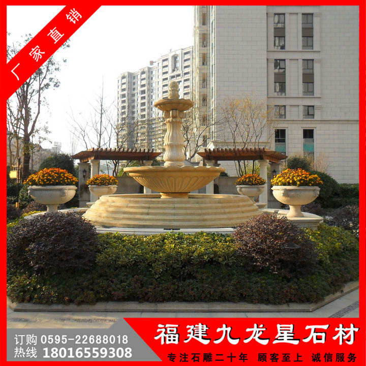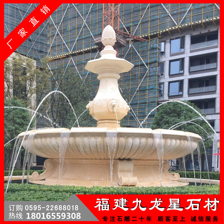 歐式風(fēng)格建筑物還可在埃及米黃水缽上放置西方噴水人物,例如埃及米黃天使噴水雕塑、埃及米黃西方少女噴水人物等,或者放置動(dòng)物雕塑,如埃及米黃天鵝雕塑、埃及米黃魚噴水雕塑等。也可在埃及米黃水缽上雕刻獅子頭噴水雕塑,獅子頭的個(gè)數(shù)可進(jìn)行排比選擇。水池邊,還可放置埃及米黃所雕刻的天鵝噴水雕塑、海螺噴水雕塑、海馬噴水雕塑進(jìn)行對(duì)于噴水。
